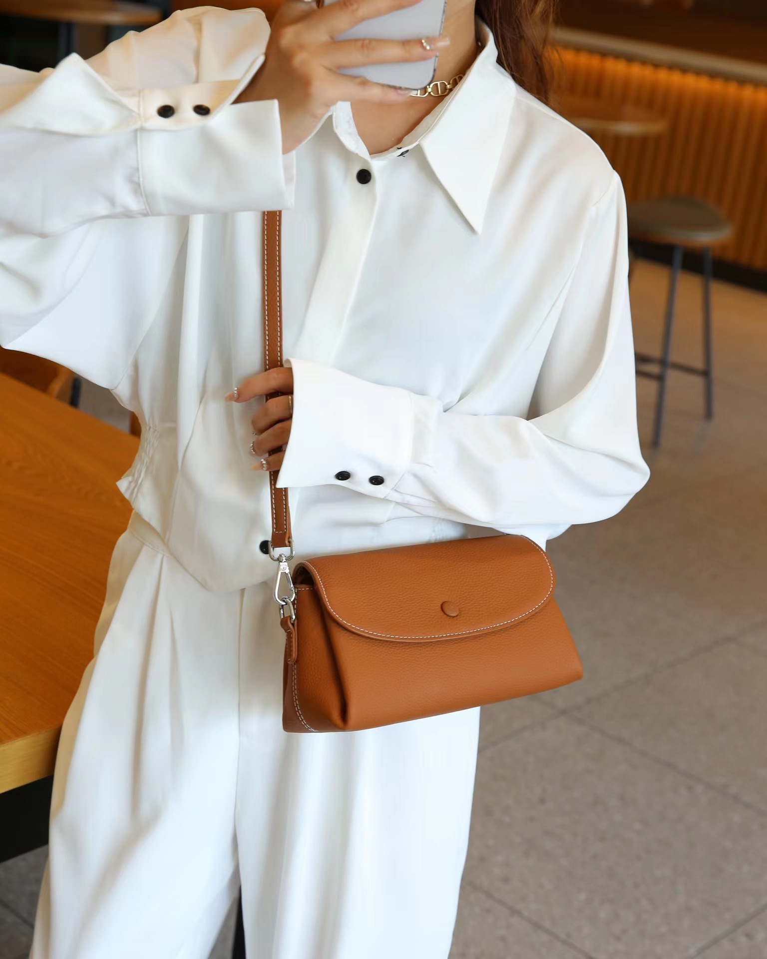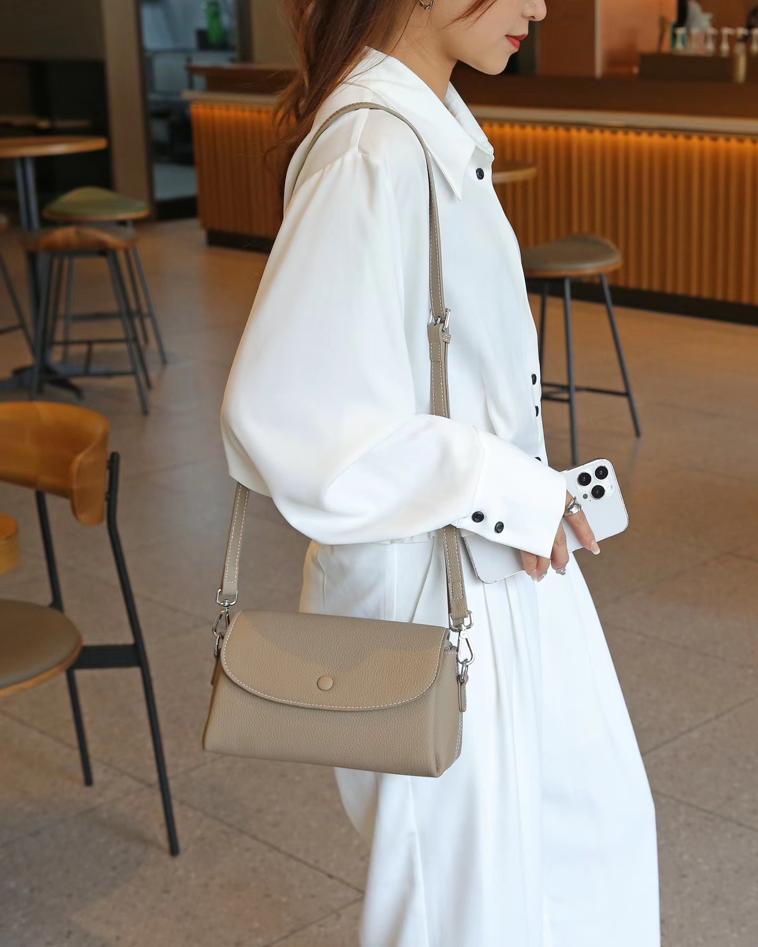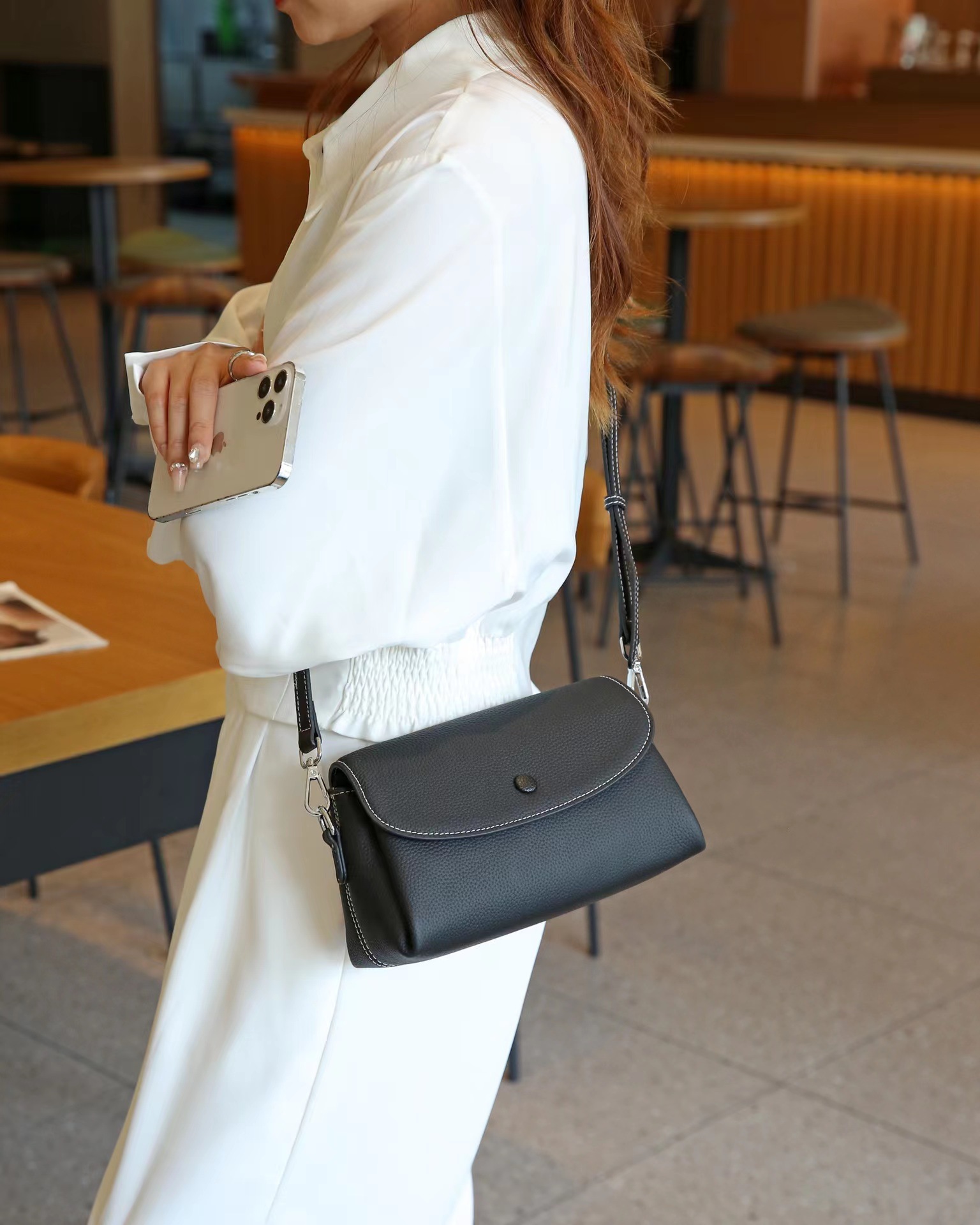 TOGO頭層牛皮女包新款時尚百搭小方包簡約側背斜背包包 義式輕奢時尚真皮革 LIS155-88578