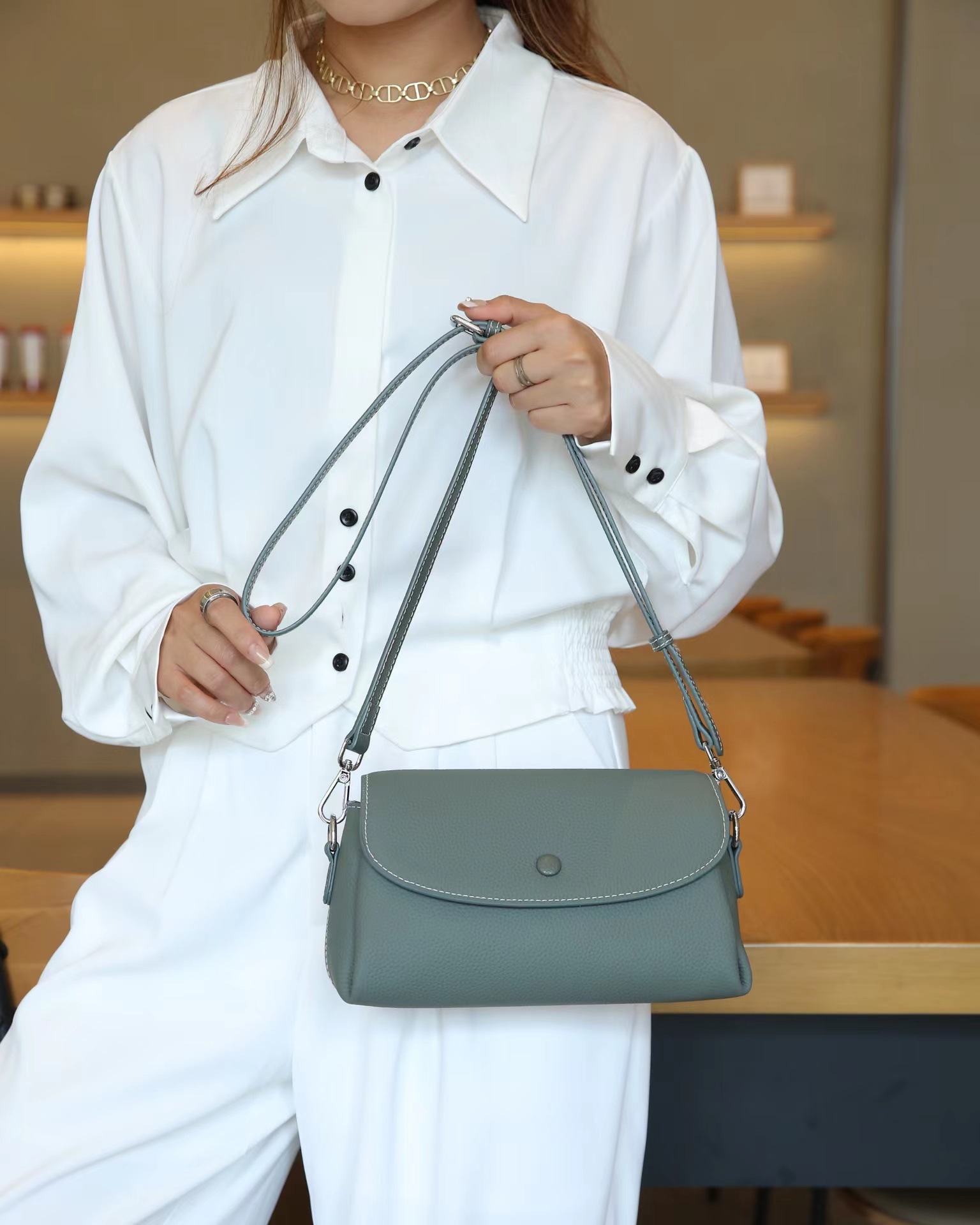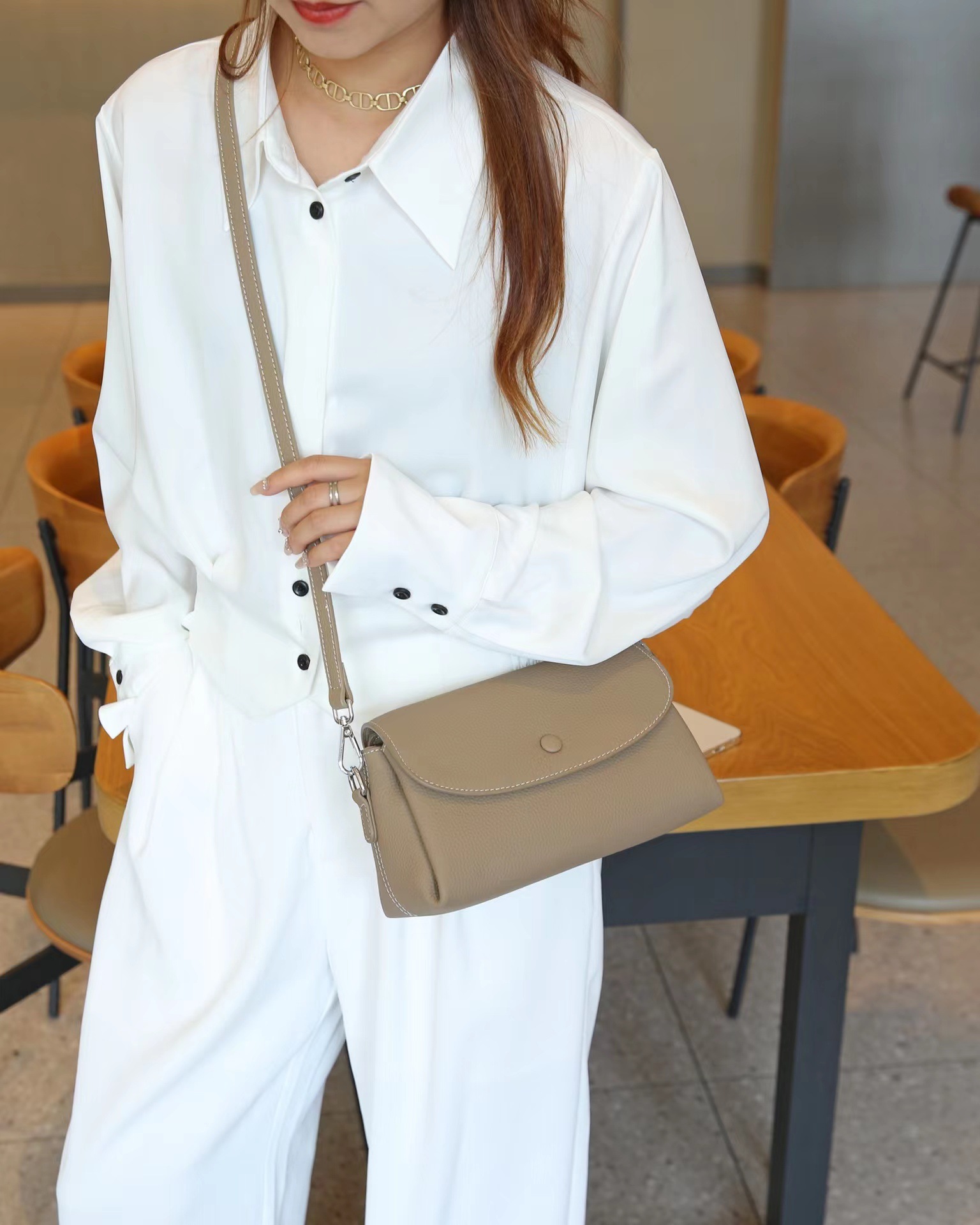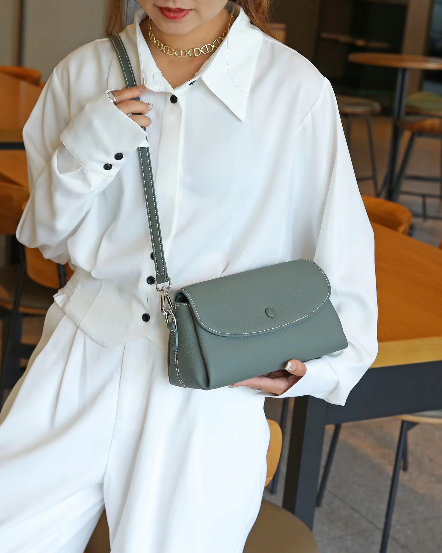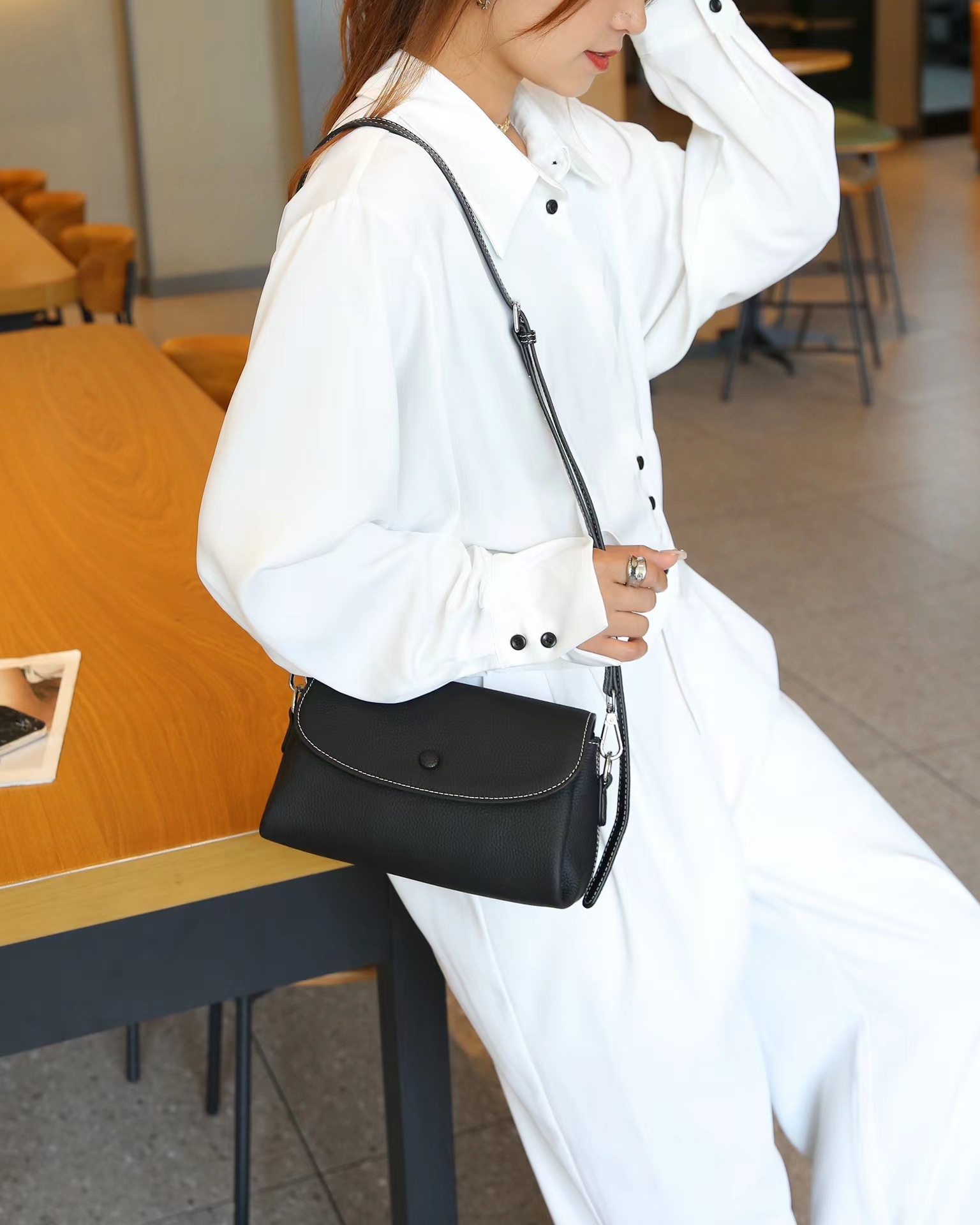 TOGO頭層牛皮女包新款時尚百搭小方包簡約側背斜背包包 義式輕奢時尚真皮革 LIS155-88578