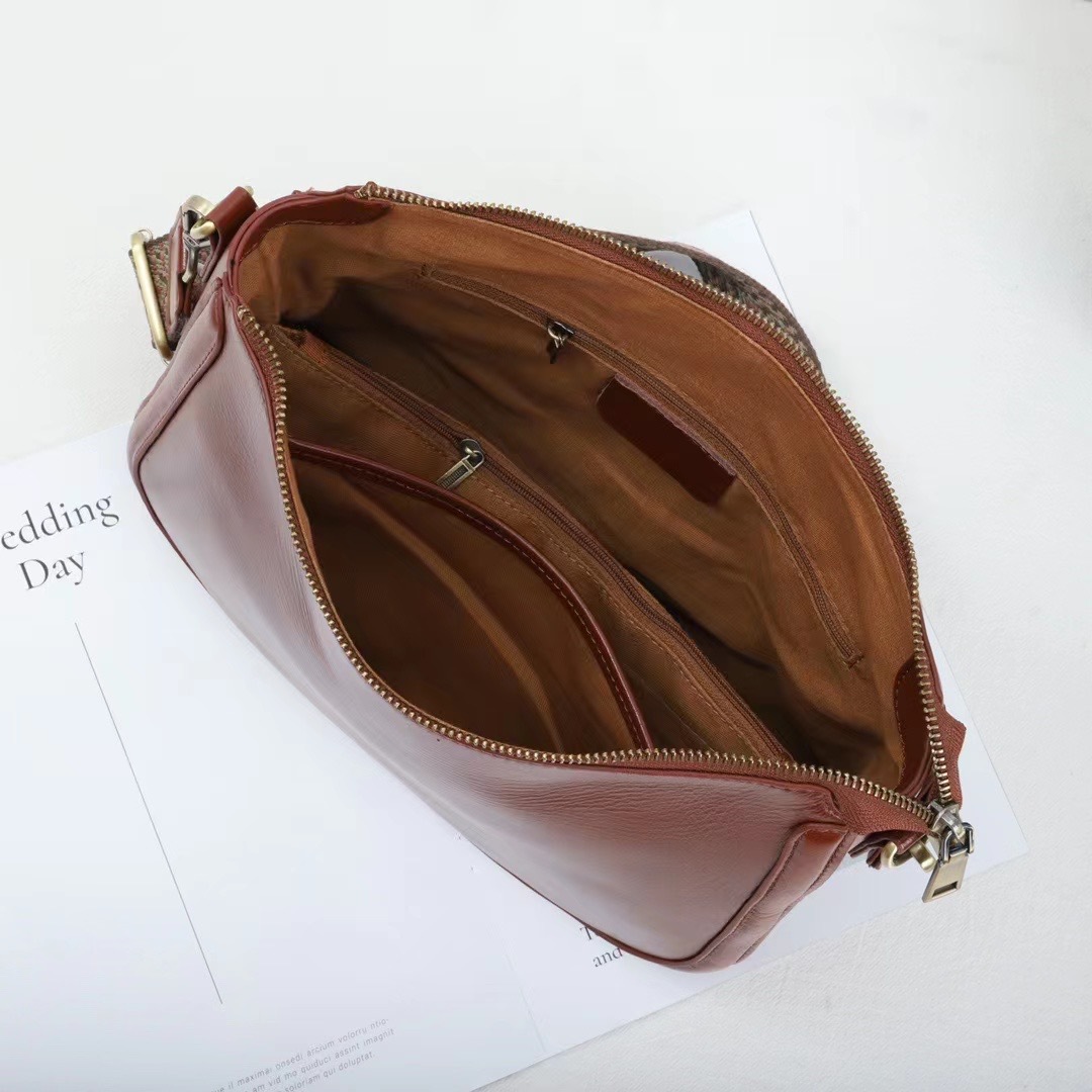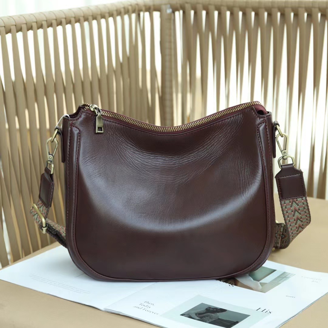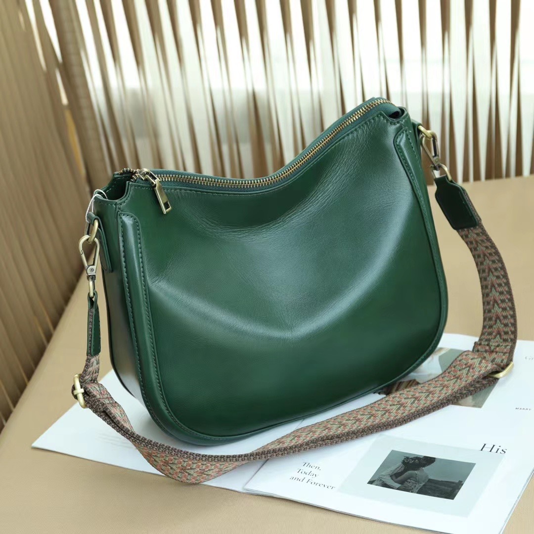 頭層植鞣牛皮腋下包真皮女包油蠟皮斜背包新款復古休閒軟皮 義式輕奢時尚真皮革 LIS154-88821