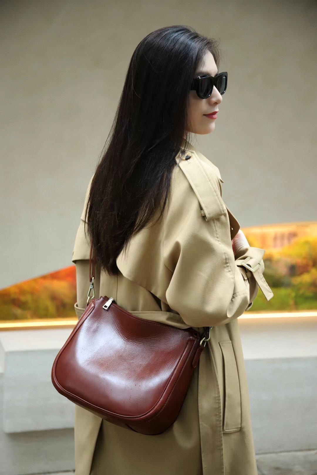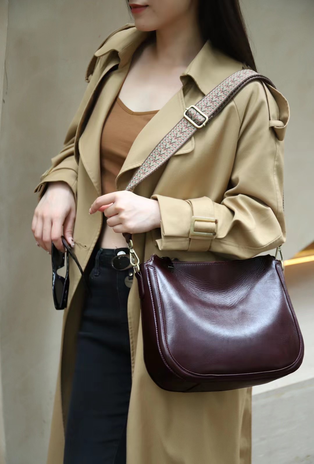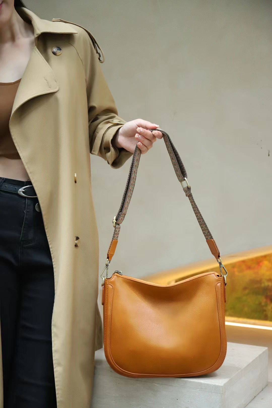 頭層植鞣牛皮腋下包真皮女包油蠟皮斜背包新款復古休閒軟皮 義式輕奢時尚真皮革 LIS154-88821