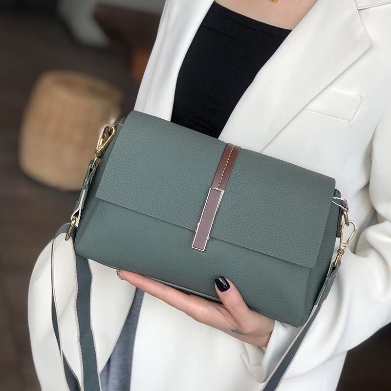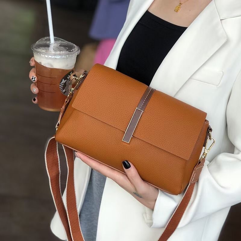 TOGO紋頭層牛皮小方包新款時尚洋氣女包潮流斜背側背包包 義式輕奢時尚真皮革 LIS122-8571