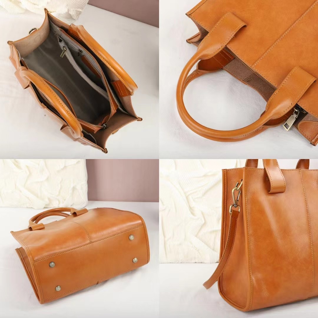 植鞣牛皮頭層牛皮特托包大容量女款真皮包樹膏皮手提包復古 義式輕奢時尚真皮革 LIS115-M768