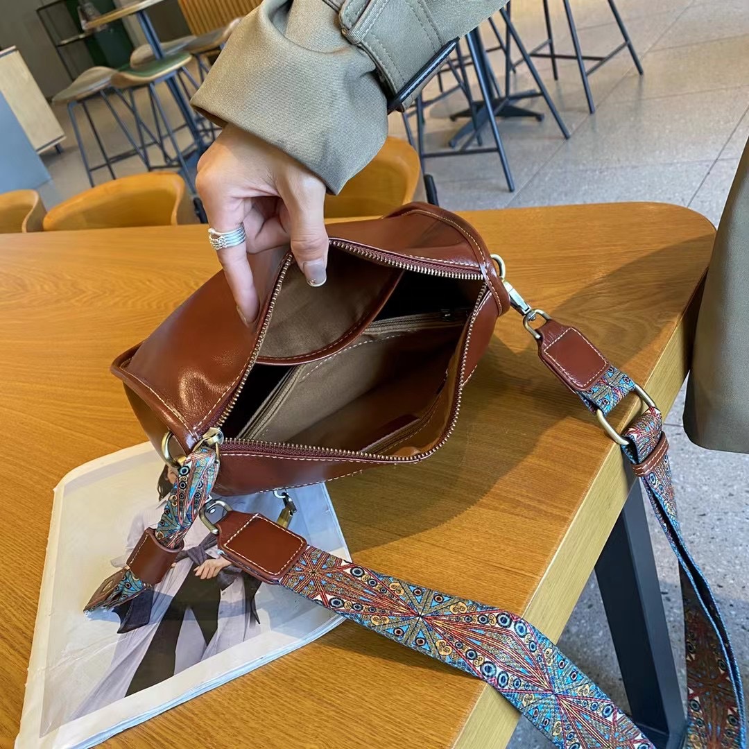 植鞣牛皮斜背包頭層牛皮腋下包復古休閒側背包手提軟皮真皮女包 義式輕奢時尚真皮革 LIS087-9003