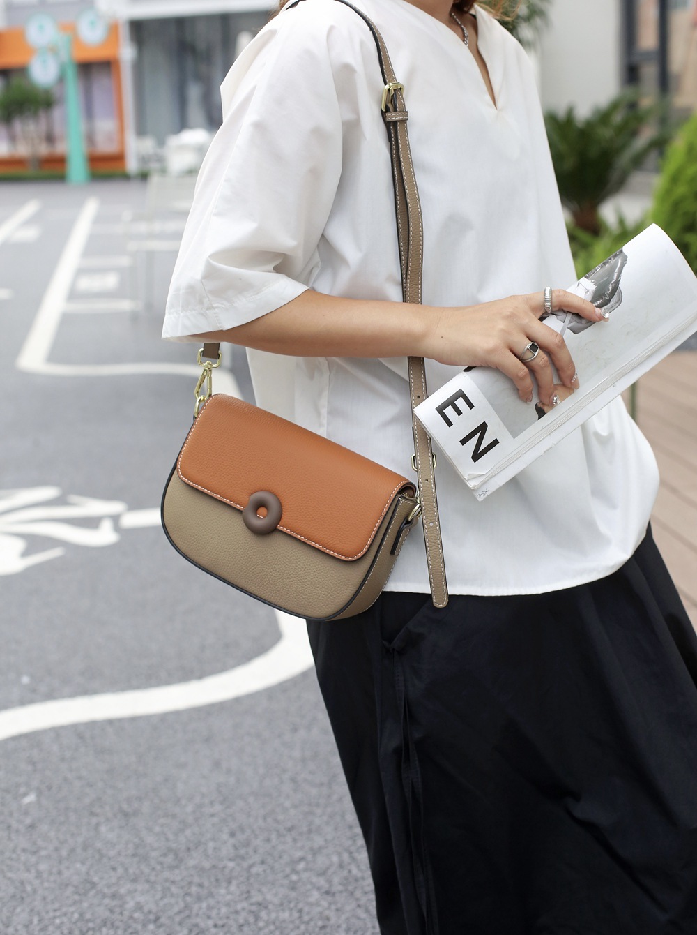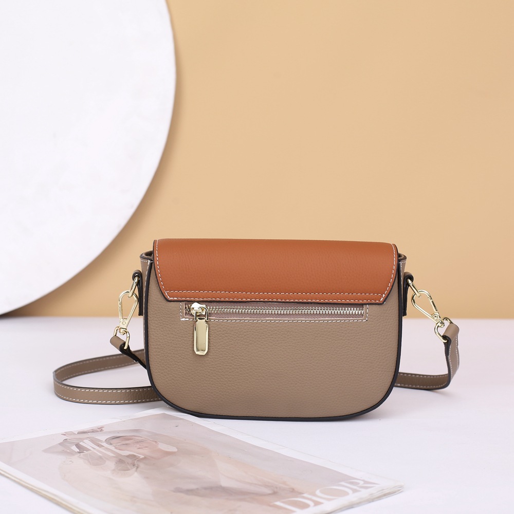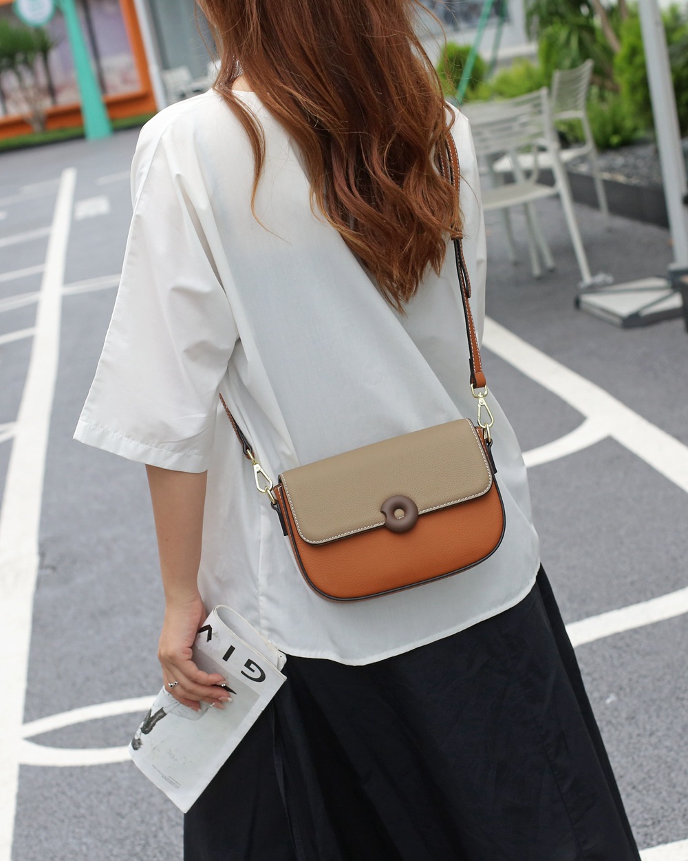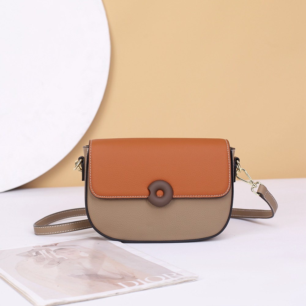 小包網路爆紅真皮女包時尚百搭馬鞍包頭層牛皮撞色側背斜背包 義式輕奢時尚真皮革 LIS080-5541