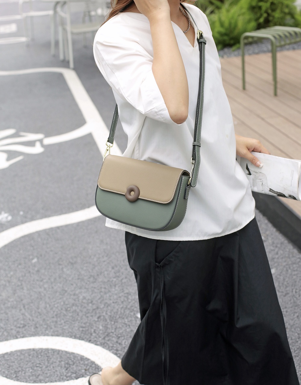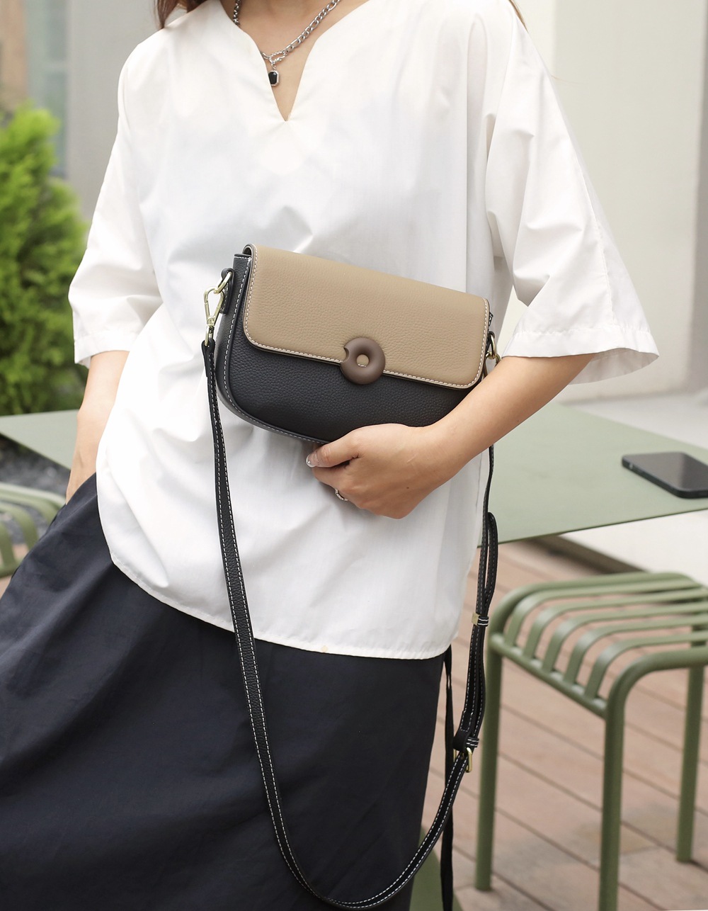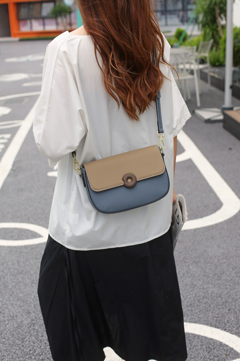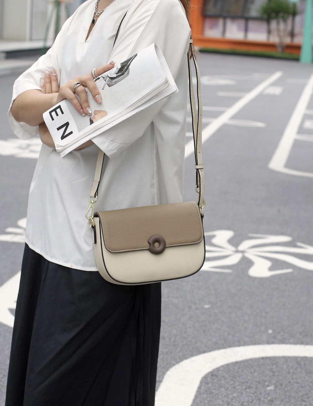 小包網路爆紅真皮女包時尚百搭馬鞍包頭層牛皮撞色側背斜背包 義式輕奢時尚真皮革 LIS080-5541