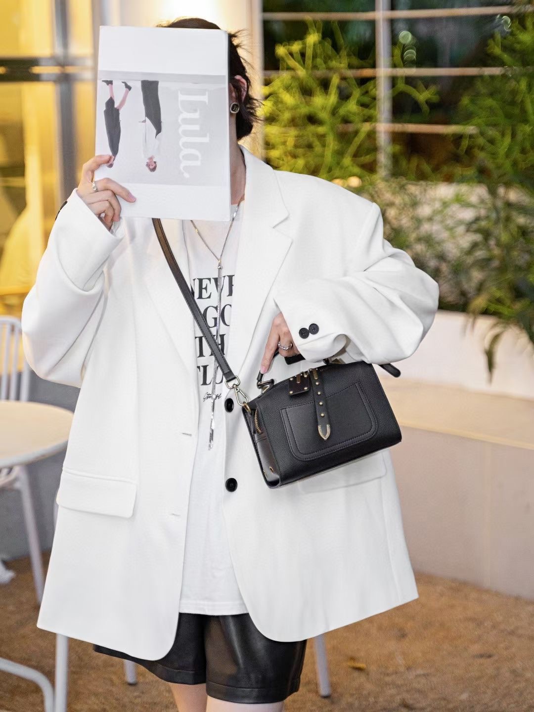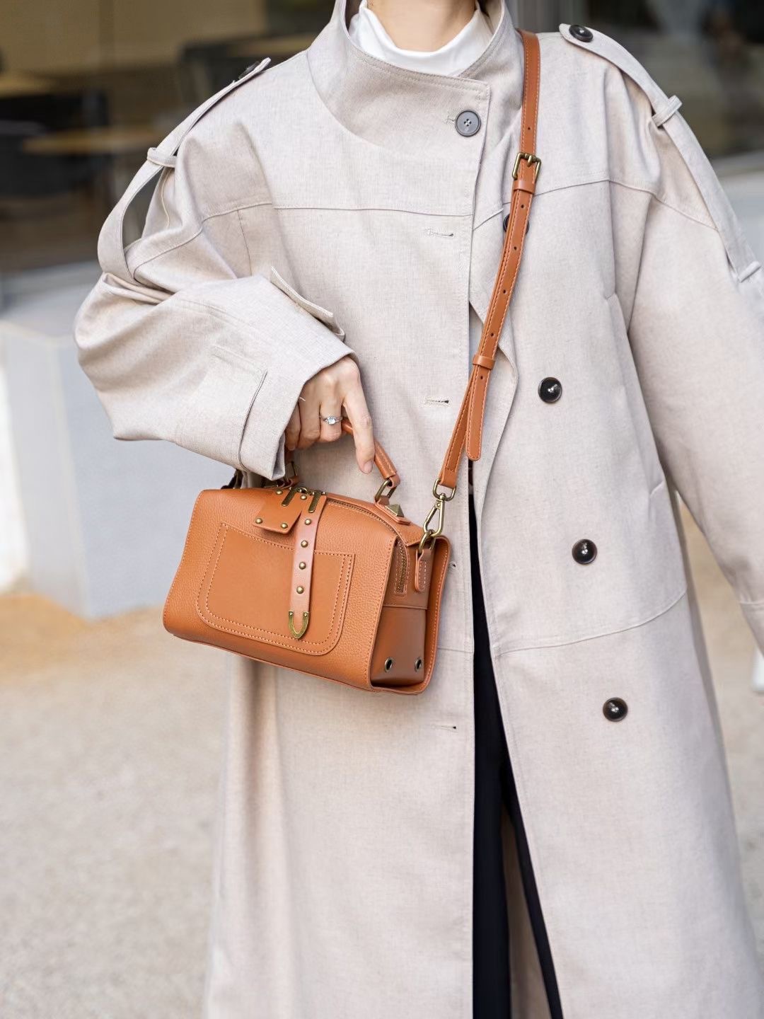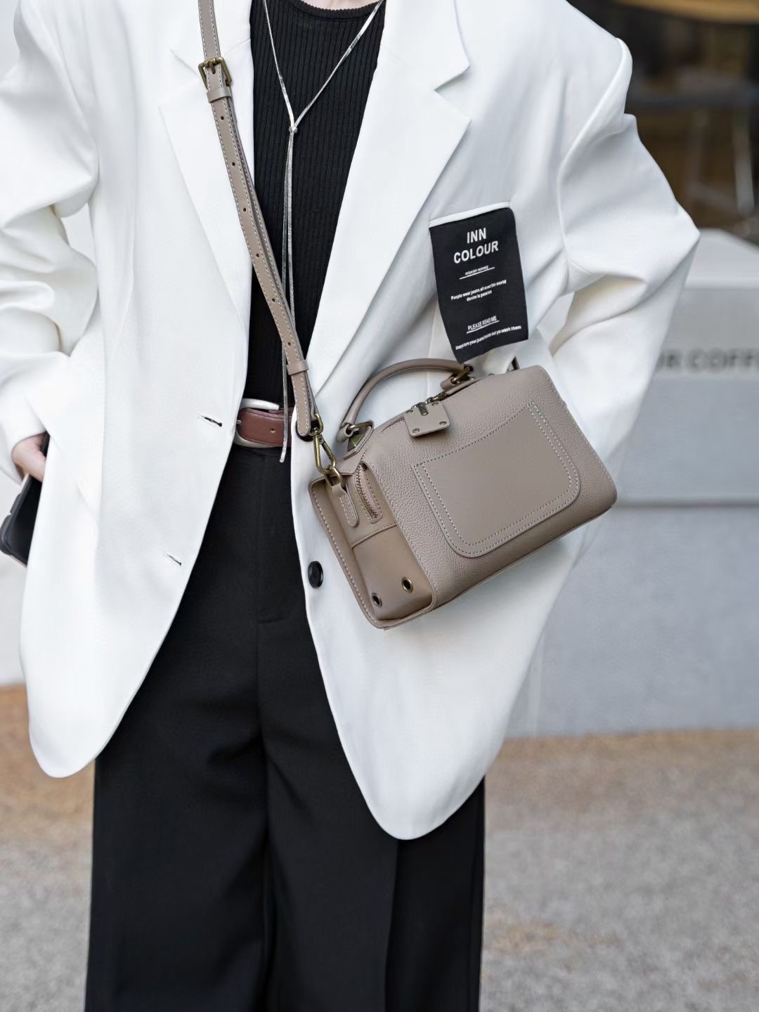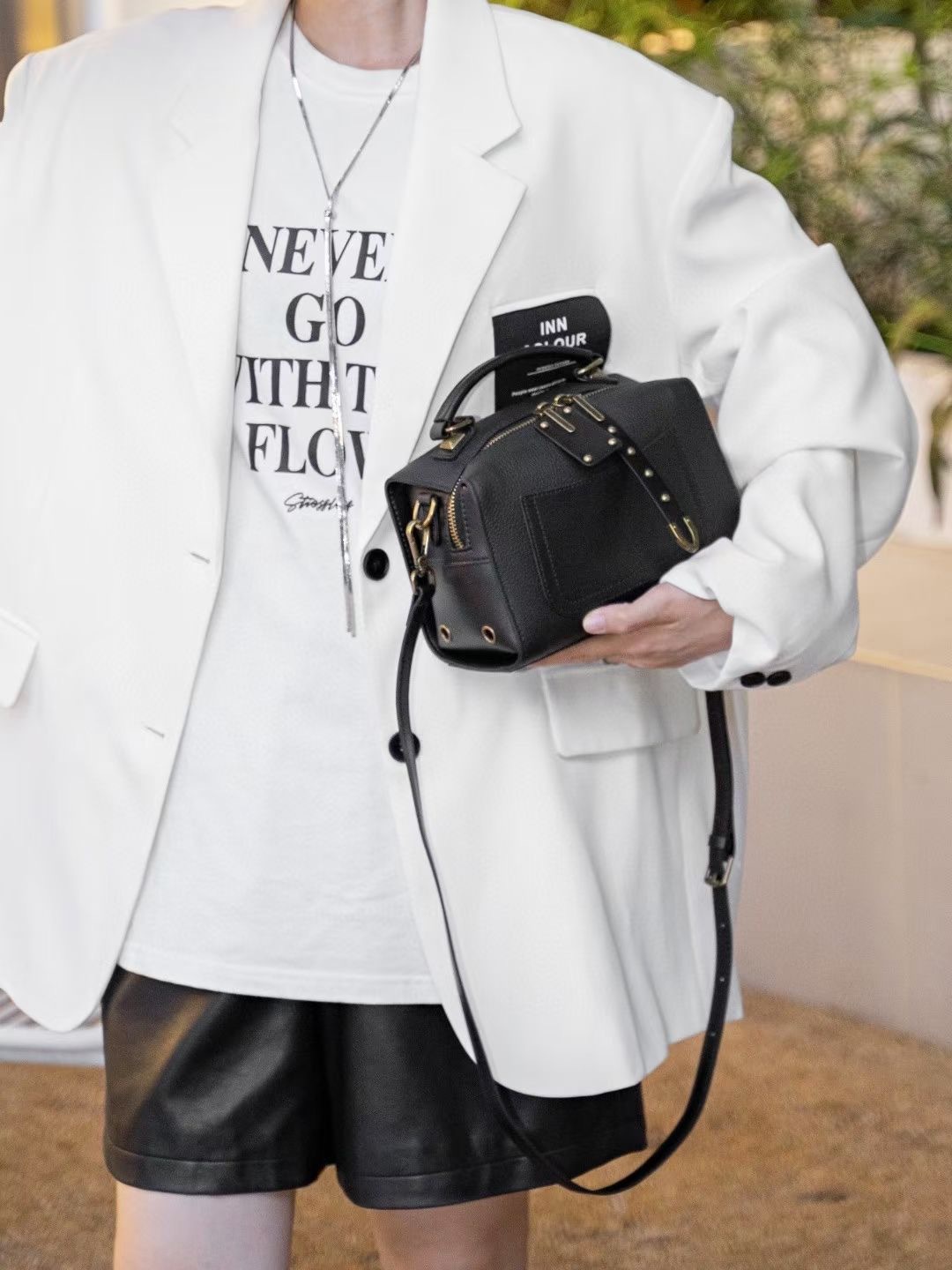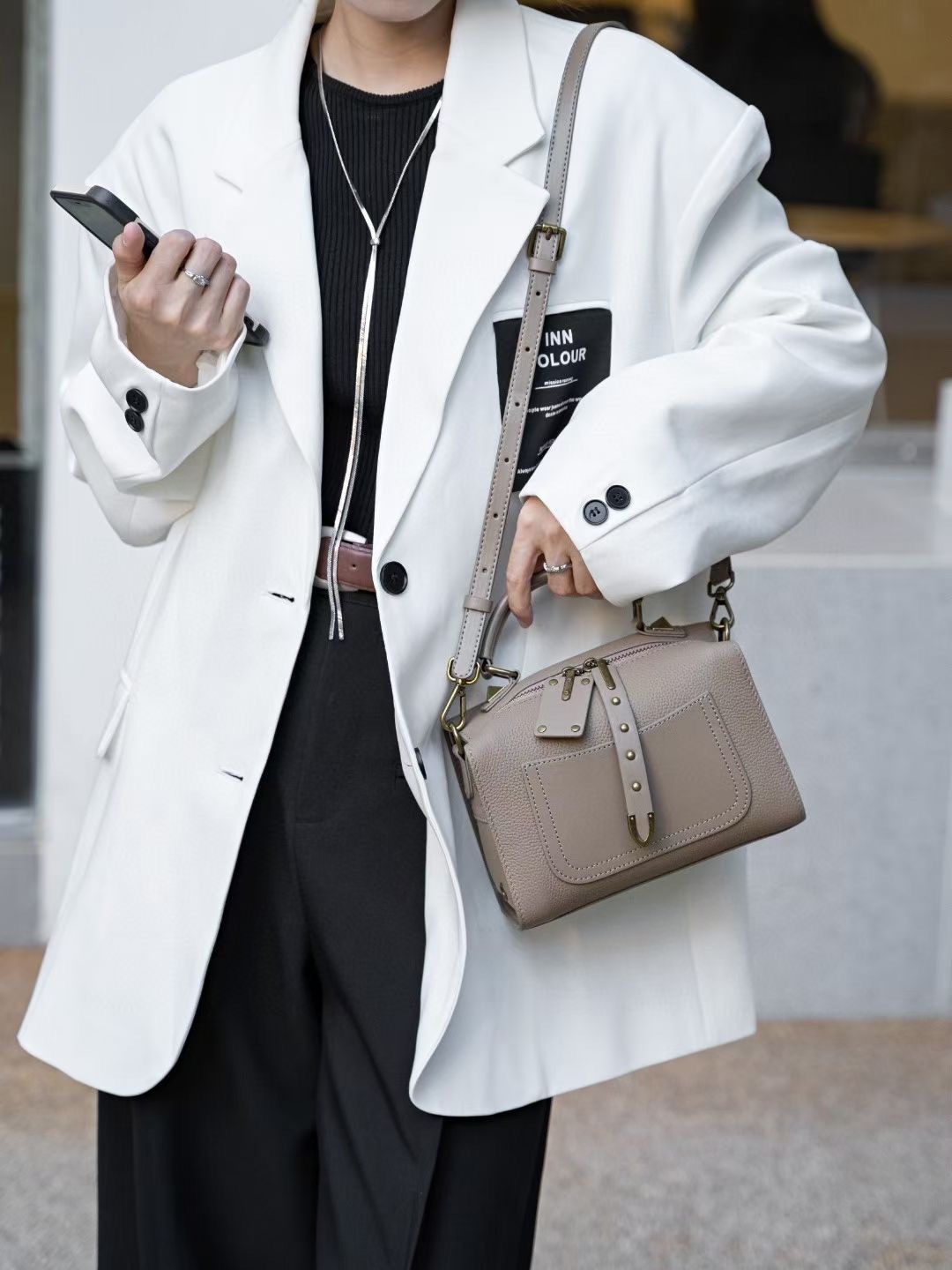 新款真皮女包頭層牛皮TOGO皮斜背包小眾高級感柳釘潮流網紅款 義式輕奢時尚真皮革 LIS055-7103