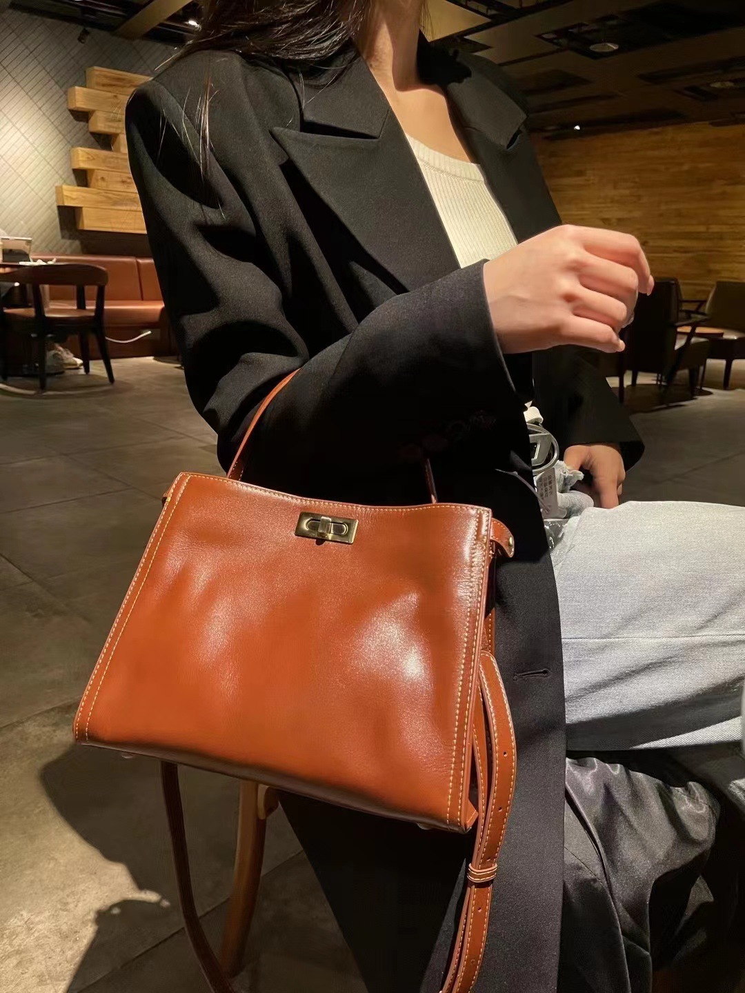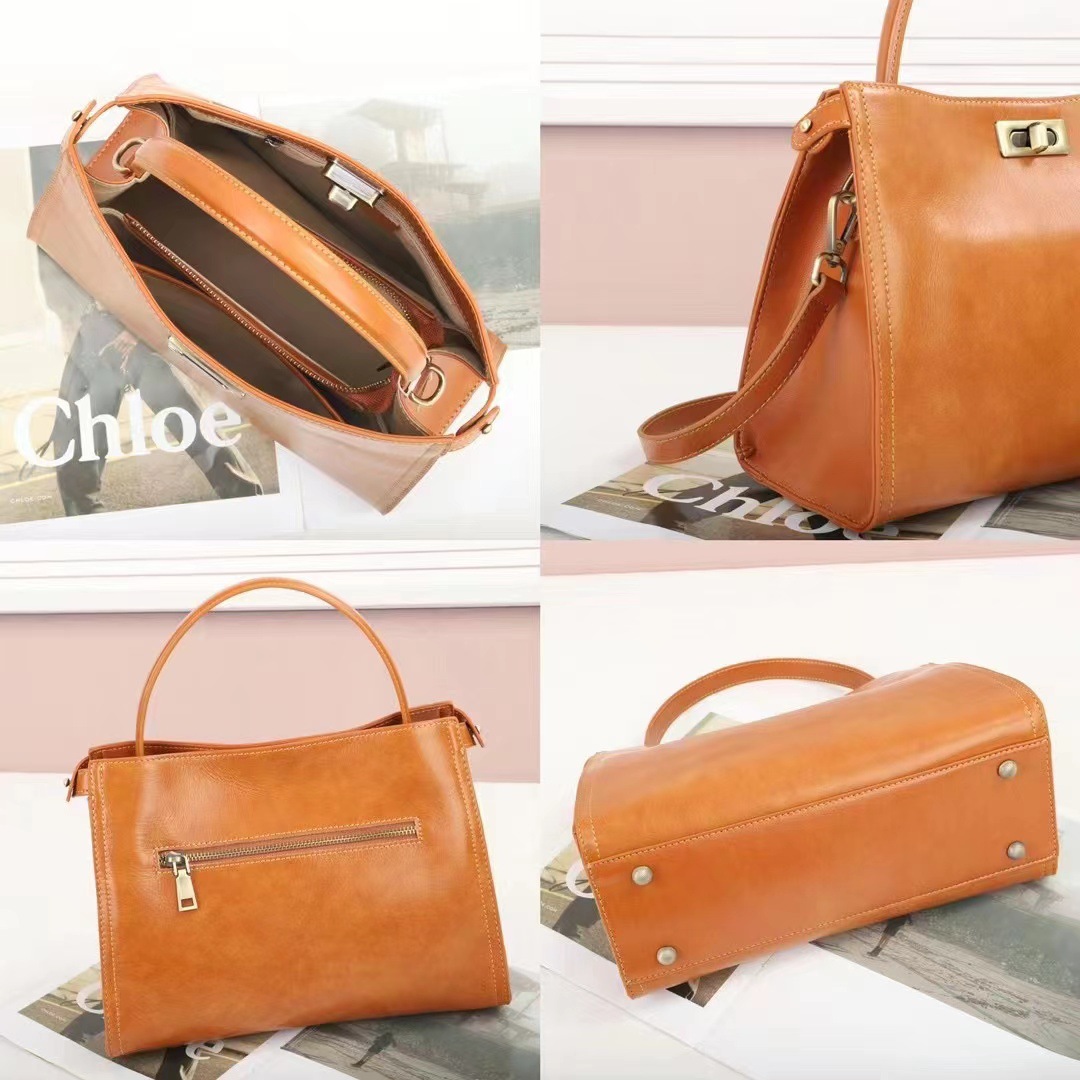 植鞣牛皮復古女包爆款凱莉包出口樹膏皮真皮包頭層皮 義式輕奢時尚真皮革 LIS040-836