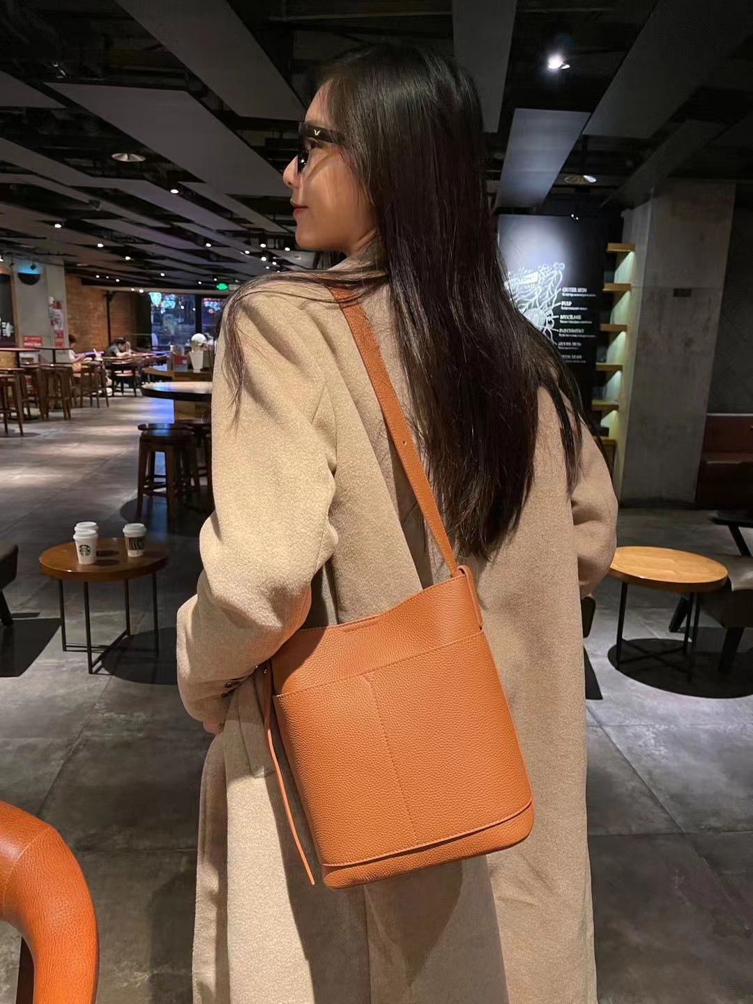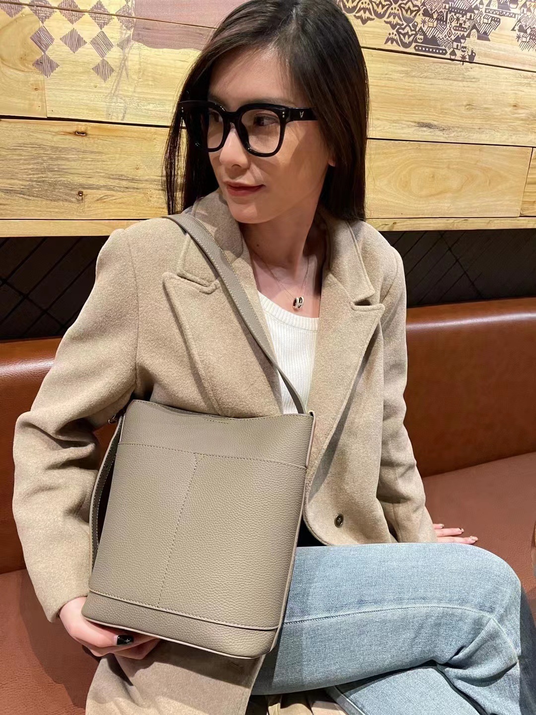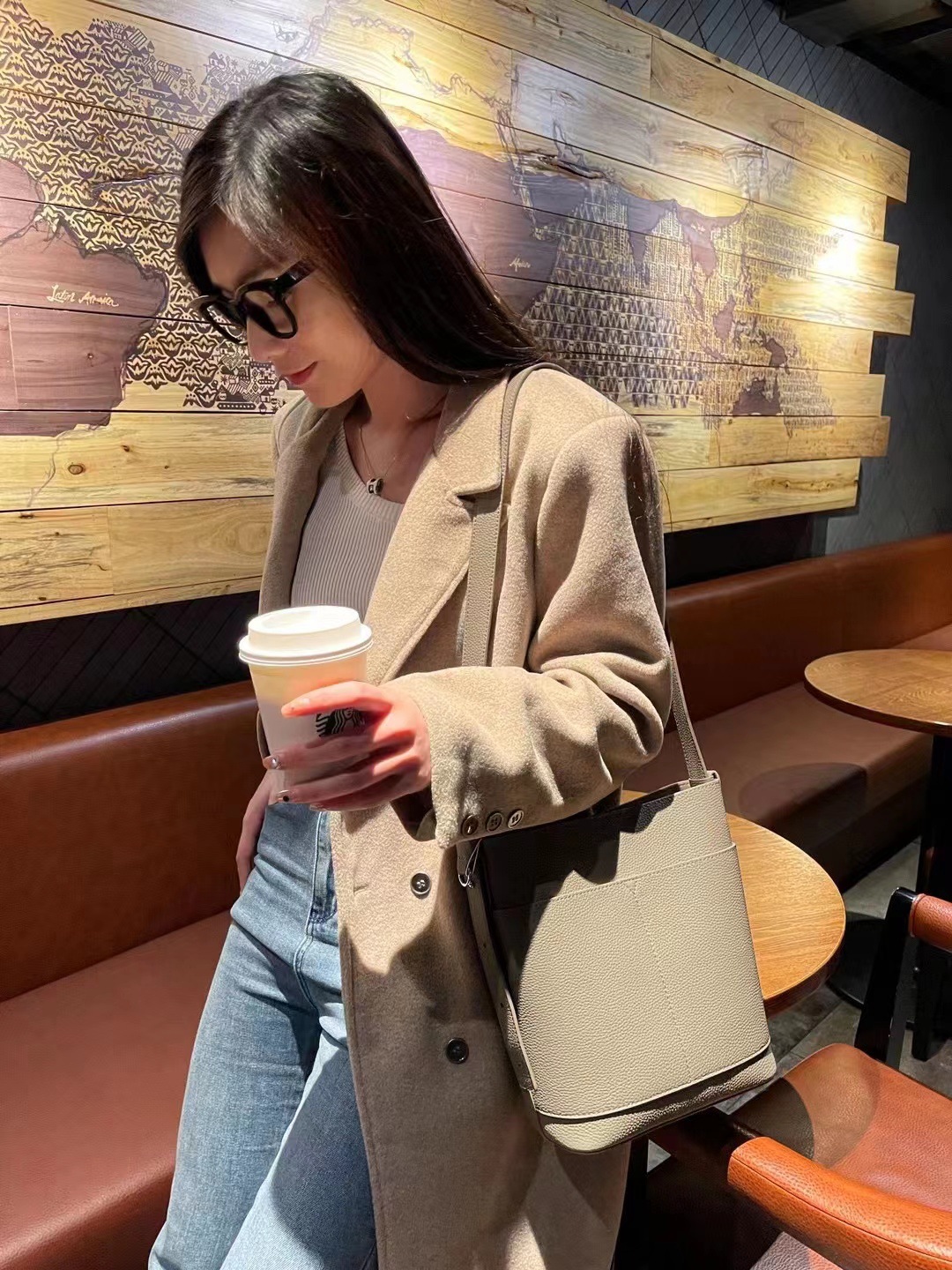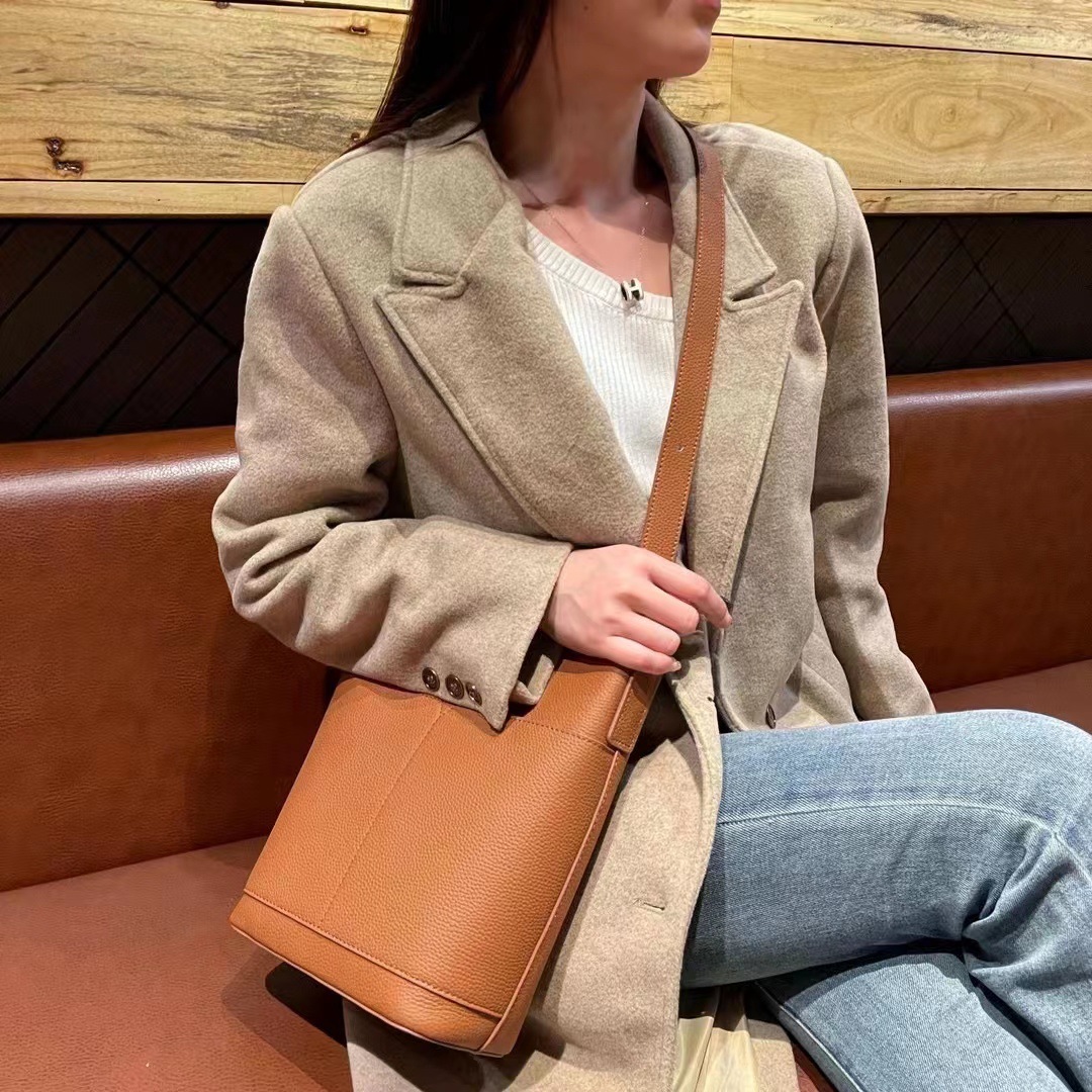 真皮女包水桶包頭層牛皮TOGO皮側背包斜背包百搭休閒通勤 義式輕奢時尚真皮革 LIS039-773
