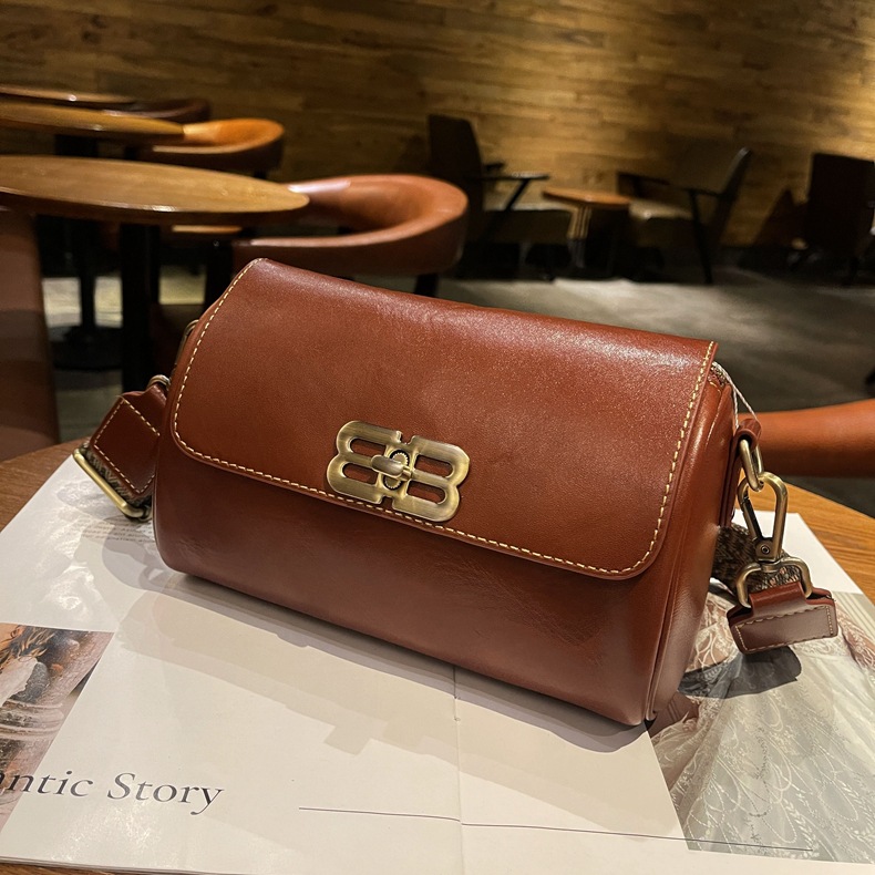 復古植鞣牛皮百搭小方包女新款網路爆紅真皮女包頭層牛皮斜背包 義式輕奢時尚真皮革 LIS032-834