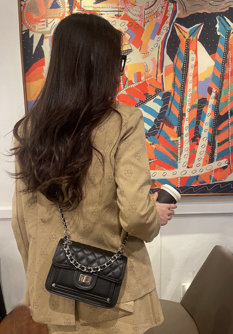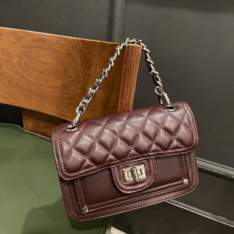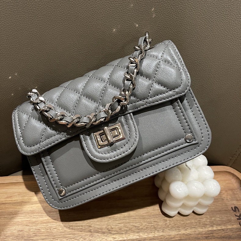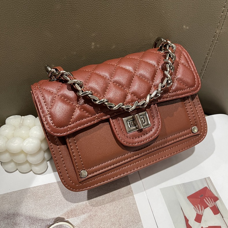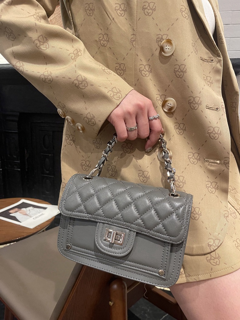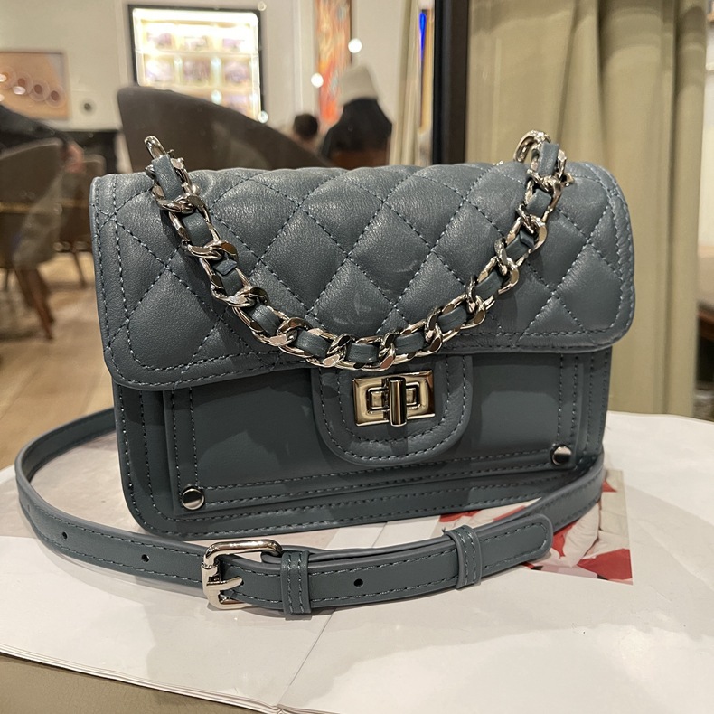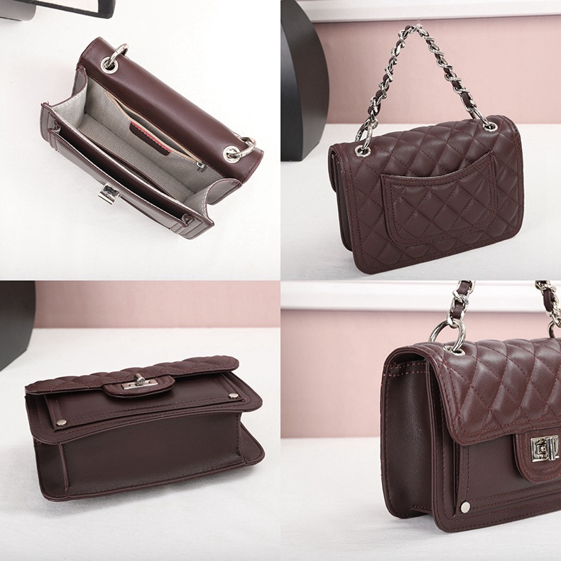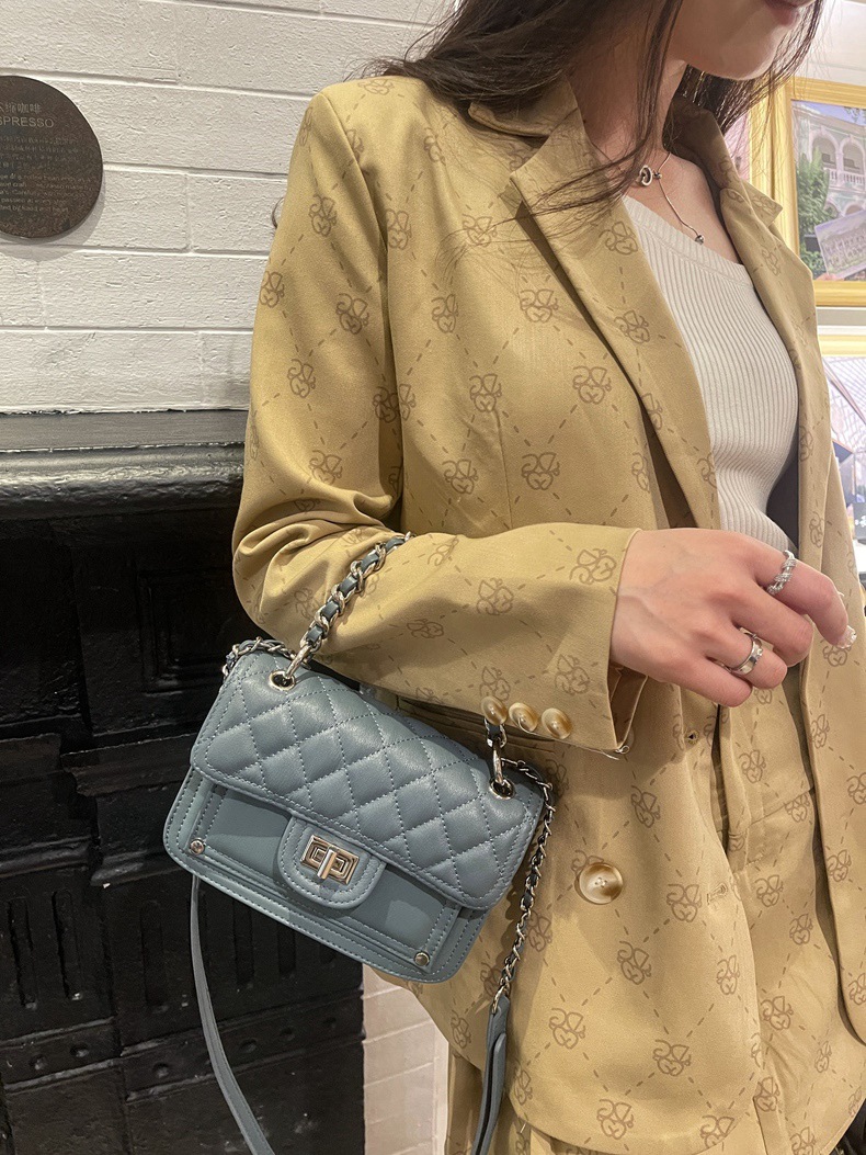 高級款感側背真皮小包斜背鏈條包頭層小牛皮菱格包小方包 義式輕奢時尚真皮革 LIS027-852