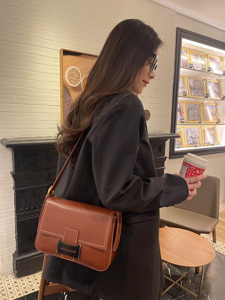 高級感復古植鞣牛皮小方包時尚百搭側背斜背包網路爆紅真皮女包 義式輕奢時尚真皮革 LIS010-855